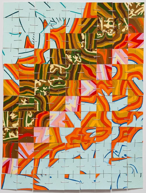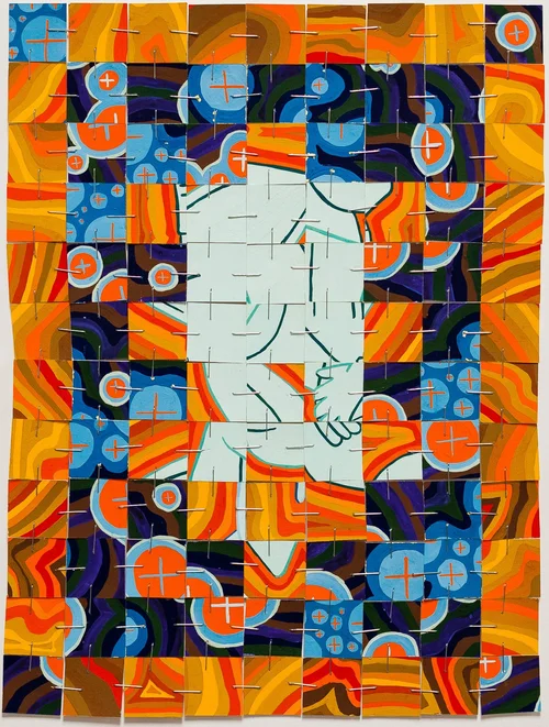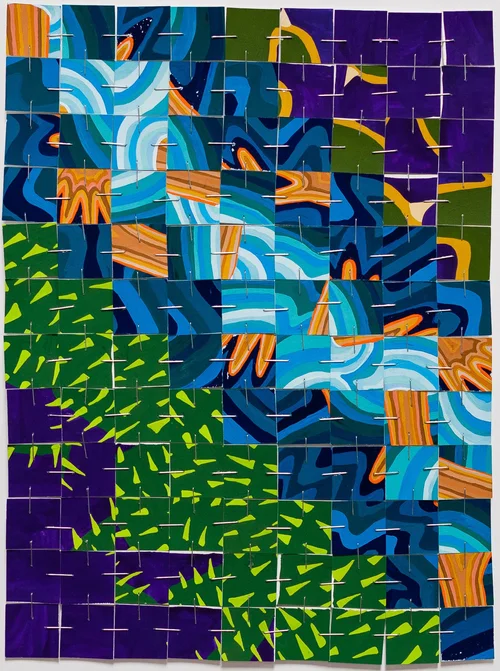 weaving: gouache, photographs, thread on paper / 34" x 44" / 2015
