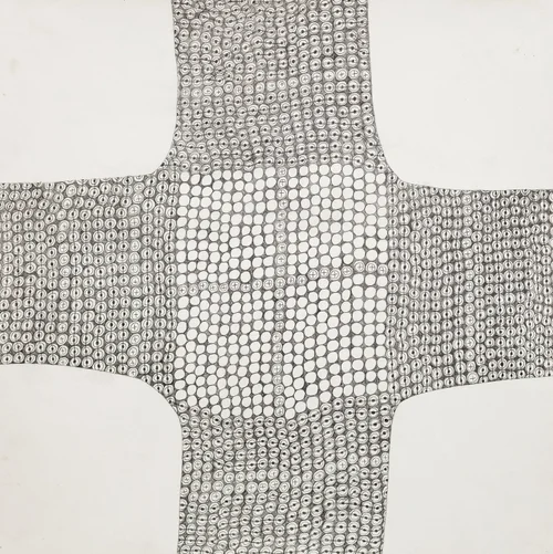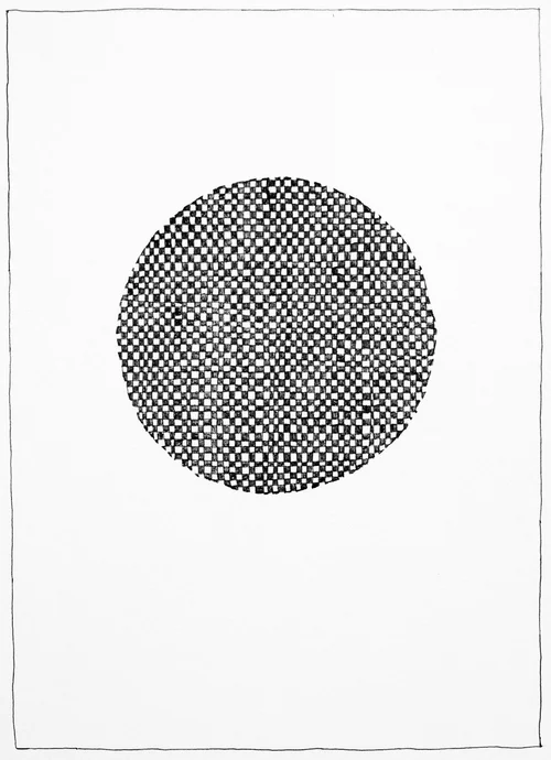 weaving: book pages, gouache, ballpoint pen, thread / 16.5" x 16.5" / 2017